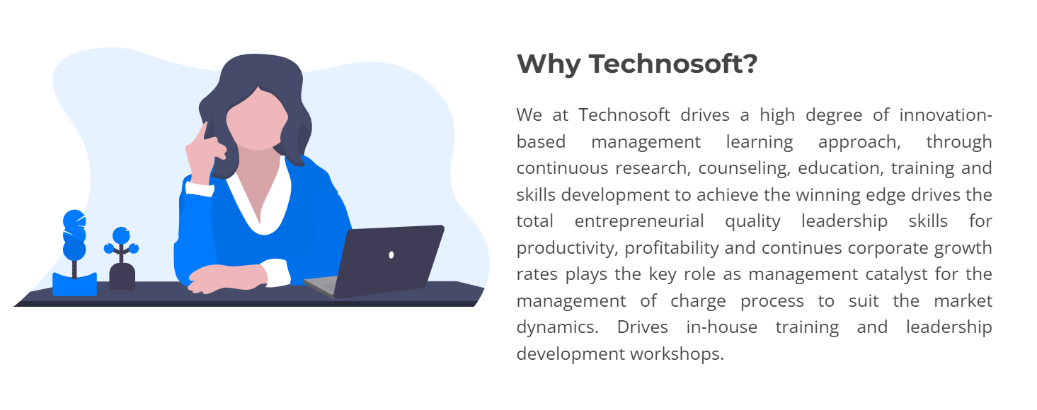 Technosoft is a one of the IT service provider in Karnataka. Incorporated in a year 2019, our group has grown from strength to strength.Technosoft, established in 2019, a professionally managed progressive organization in the sphere of IT Services and Enterprise Leadership Foundation, created mainly to impart IT enabled quality services to meet the new challenges of industry and business.